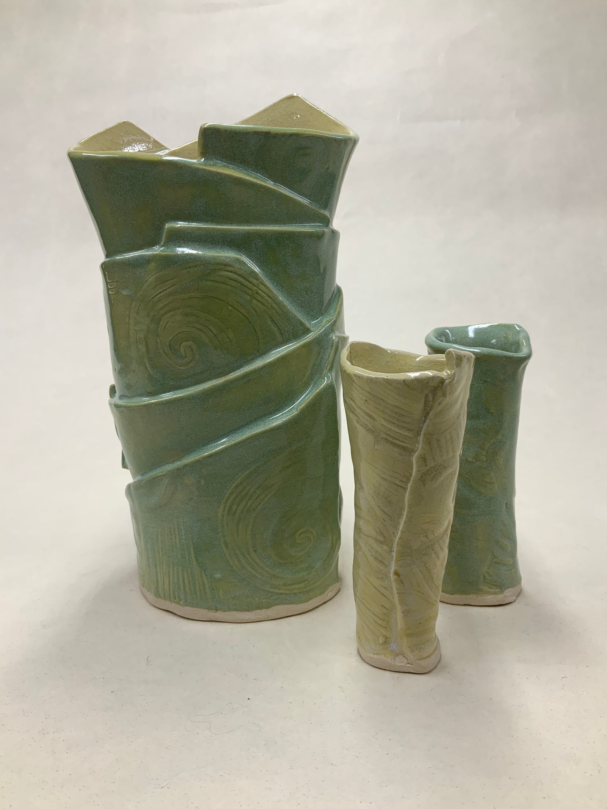 Small softly wrapped honeydew outside and sunshine yellow interior vase/vessel