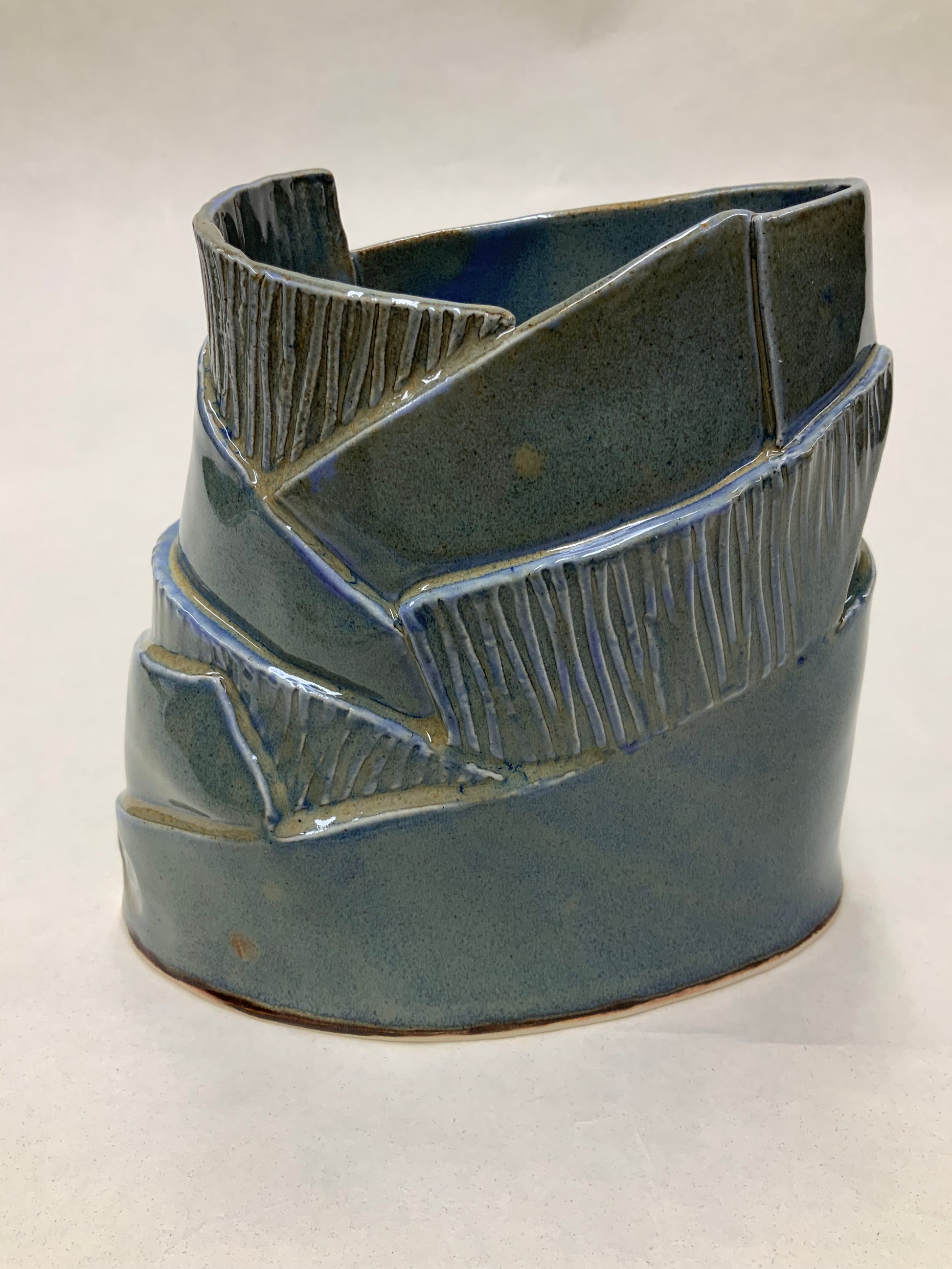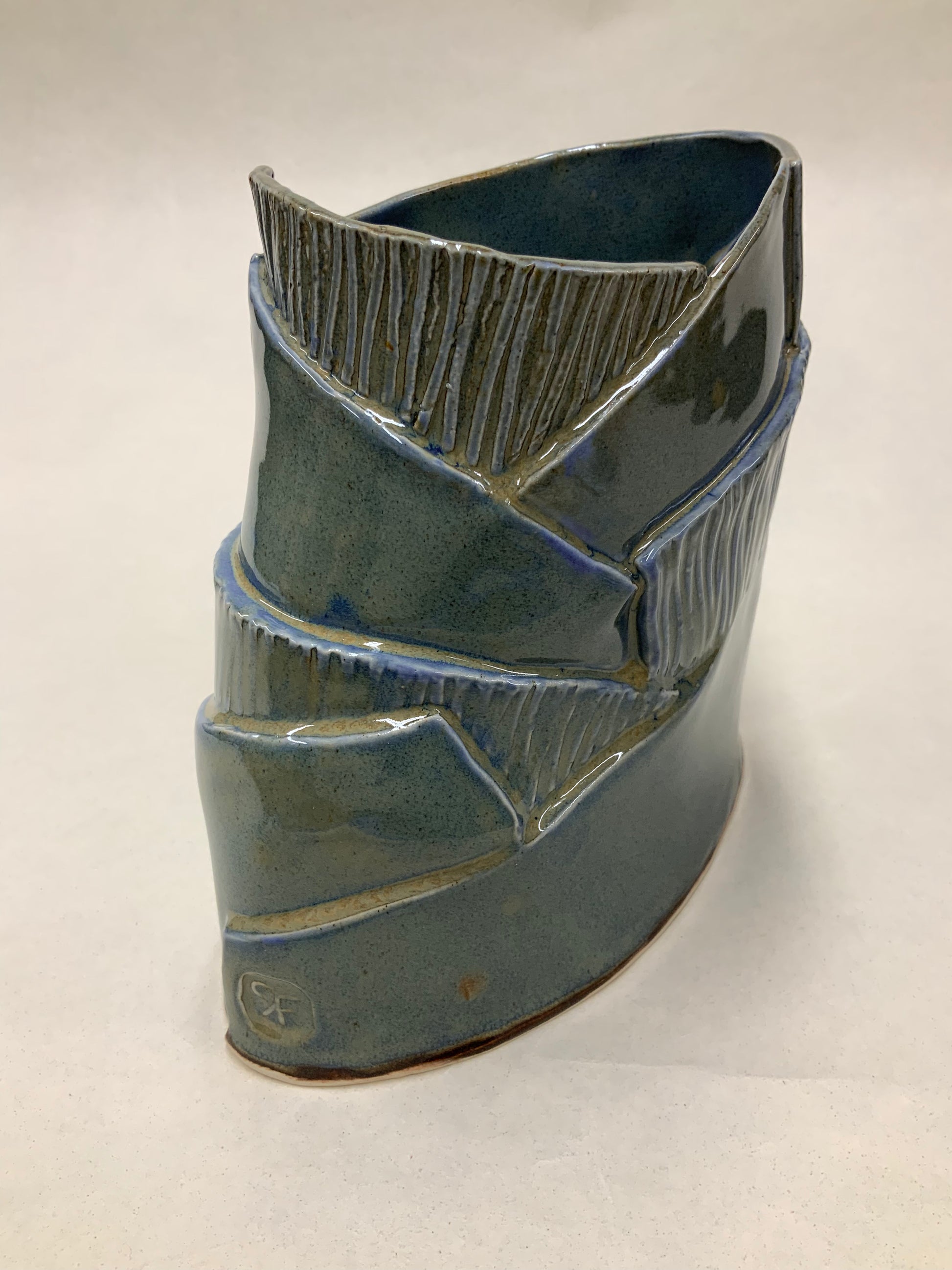 One of a Kind - layered blue violet oval medium vase/vessel